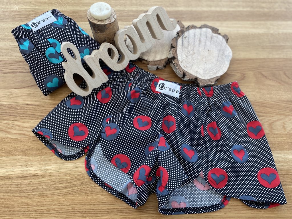 Dámské trenýrky ze 100% bavlny se vzorem srdíček rozzáří ledajaký šatník. Dámské trenýrky se srdíčky je ideálním dárkem pro Tvou drahou polovičku jako důkaz Vaši lásky. Do těchto trenýrek se dámy rozhodně zamilujete, nejen kvůli designu ale také kvůli pohodlnosti. Naše trenýrky se vyznačují především svým originálním střihem a to předními a zadními rozparky na nohavičce, které dodávají našim trenýrkám maximální pohodlí. Dále se můžeme pyšnit, že jsou vyráběny v České republice naši rodinnou značkou De-Sire.